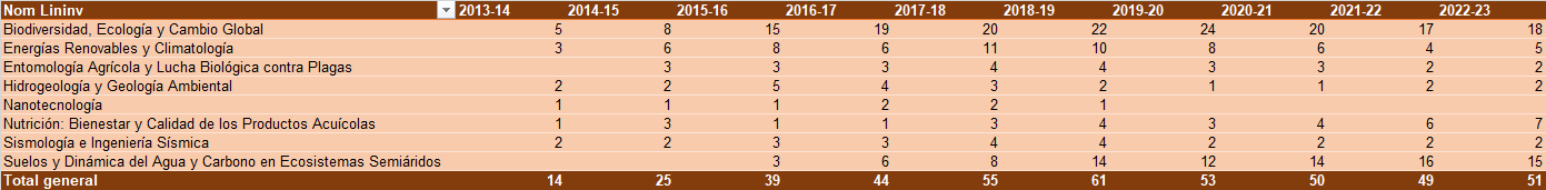 - Annual evolution of students per line of research