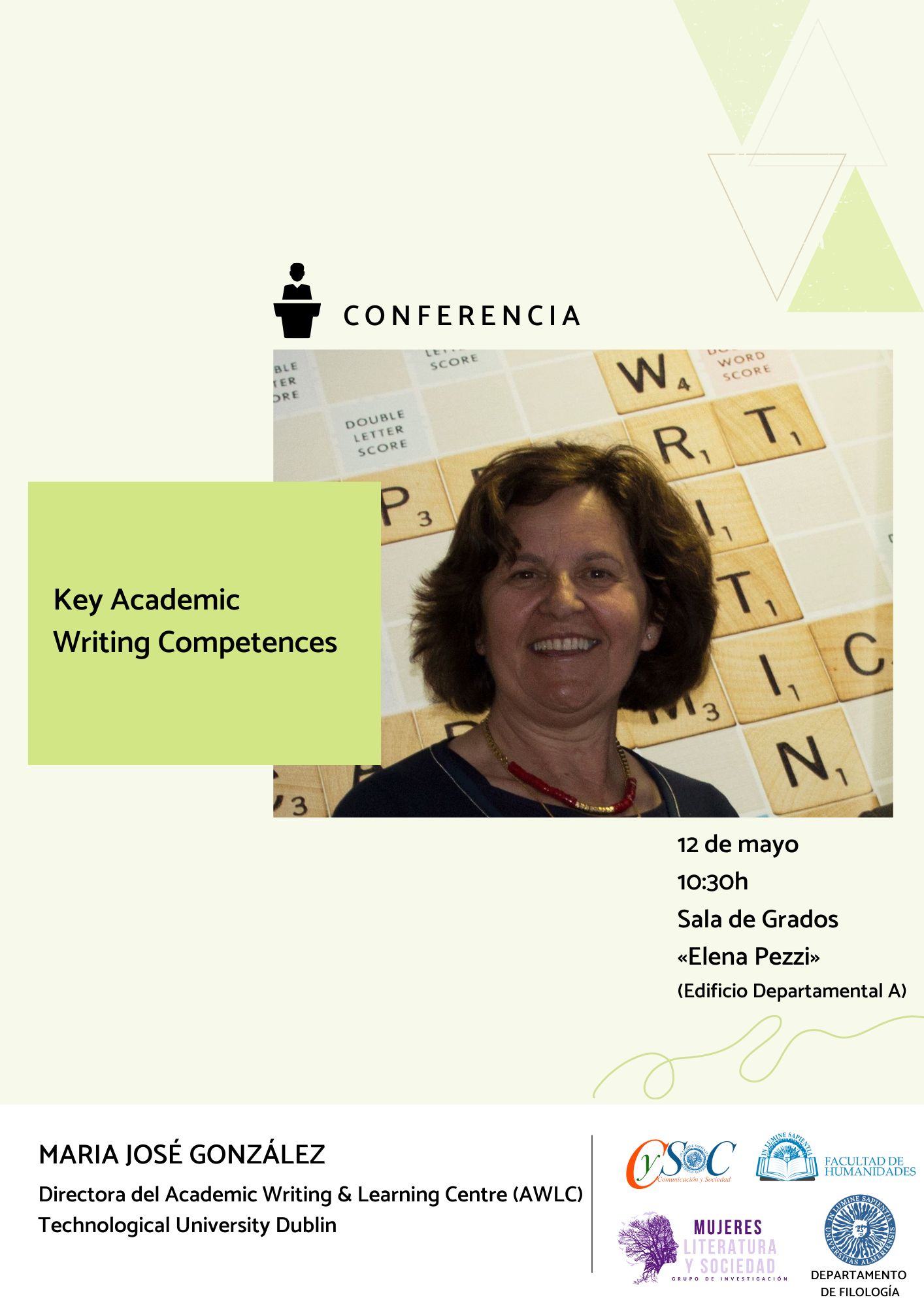 - Conferencia: "Key Academic Writing Competences" (12 de mayo a las 10:30h)