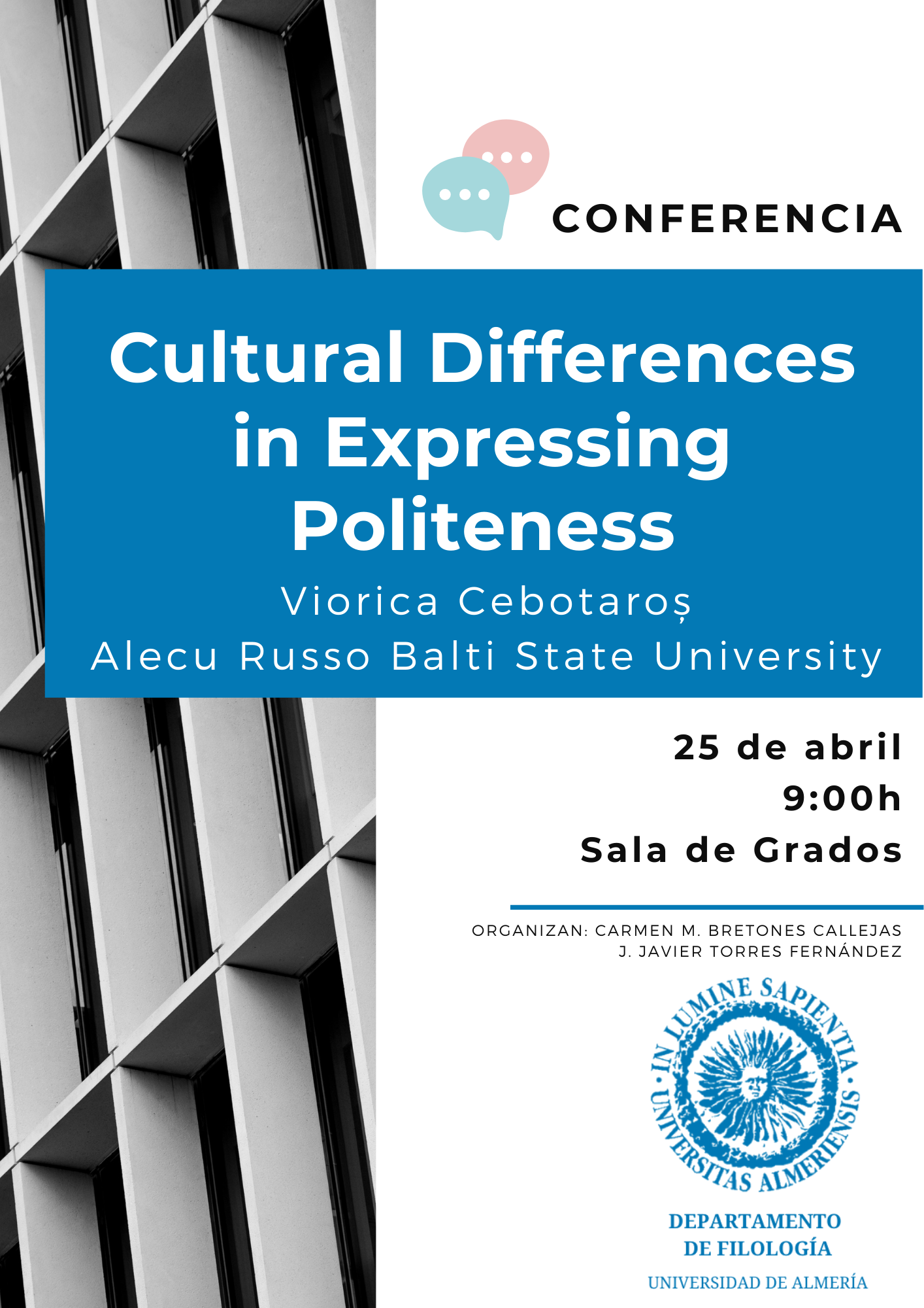 - Conferencia: "Cultural Differences in Expressing Politeness" (25 de abril de 2023) - Cartel